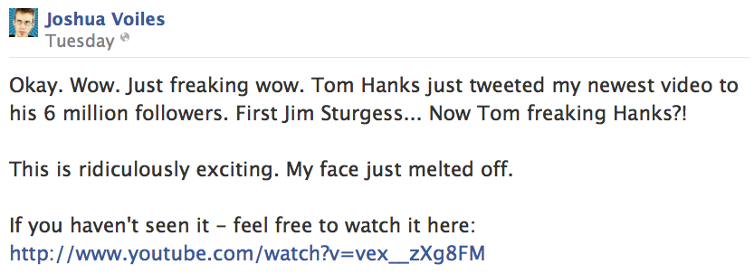 Joshua Voiles Facebook reaction to Tom Hank's Tweet