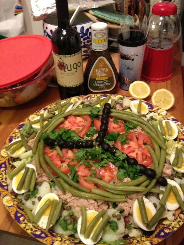 We attempted to contact Melodie thru her Facebook page and discovered that she recently attended an Oscar party that featured a beautifully crafted Hugo inspired Nicoise Clock Salad and looks they were washing it down with some Hugo wine! Bon Appétit!!!